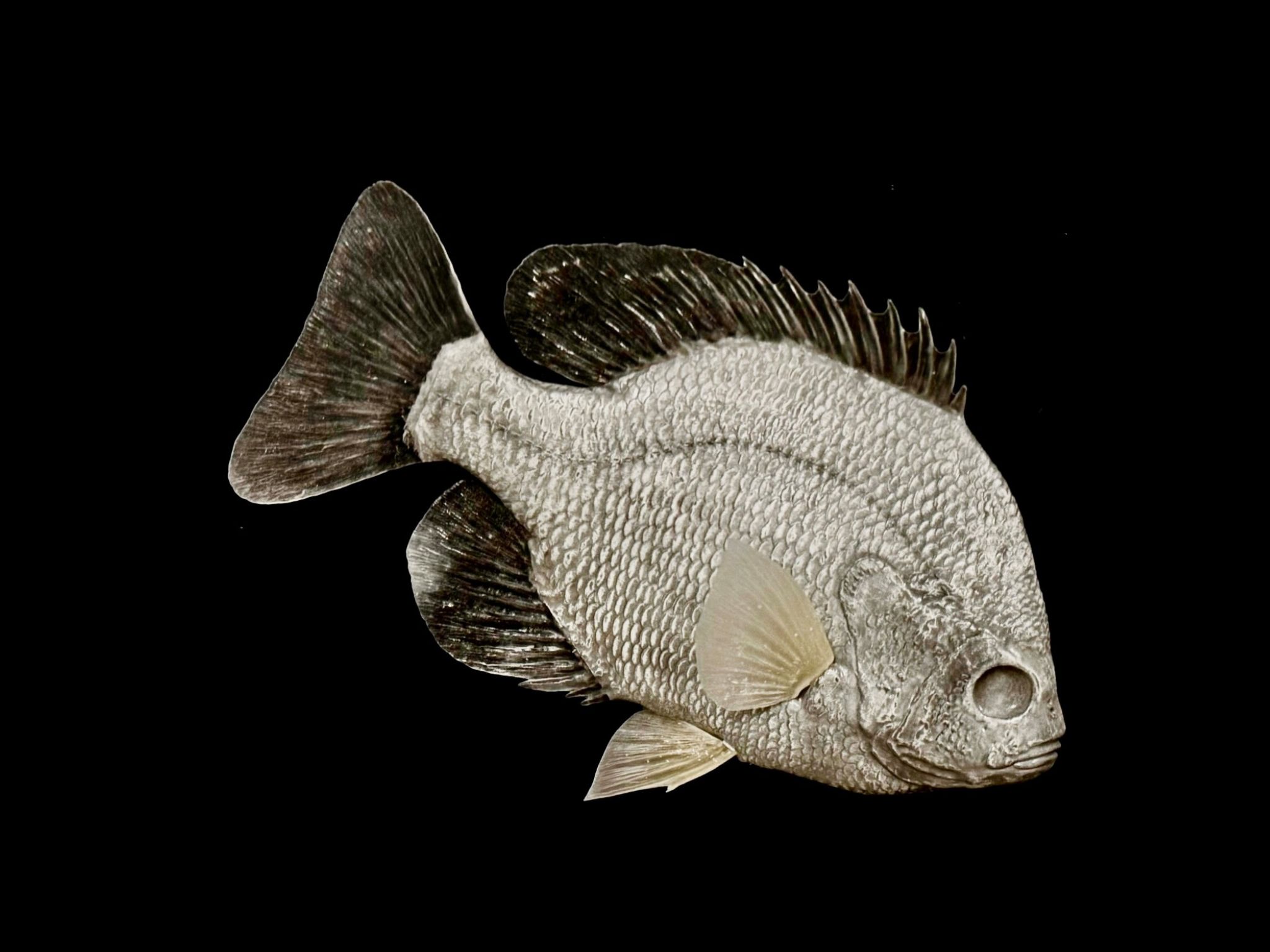 Each Bluegill replica arrives fully assembled except for the pectoral fins, which are designed for easy installation and custom posing. This hybrid approach saves hours of seam and assembly work while giving artists the ability to tailor their fish’s expression and movement. It’s the best of both worlds: factory-finished precision with final-touch flexibility.What sizes and specifications are offered?