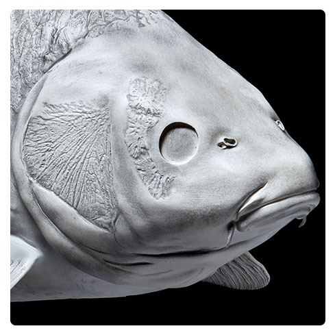 Our Masterpiece Reproduction Carp is available Unassembled (Ready-to-Assemble) or Assembled (Ready-to-Paint). Seamless, durable polyurethane construction, accurate anatomy, and crisp scale detail. Precision fit, fully finished in 360-degrees. Exceptional inner mouth details (available Open or Closed). Realistic fins are thin and flexible, easily shapeable with heat. Satisfaction guaranteed.